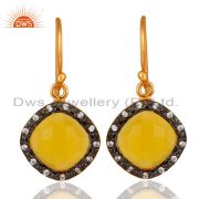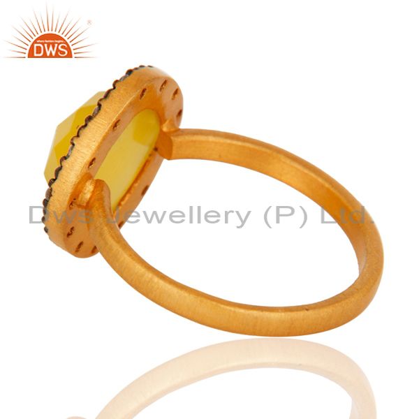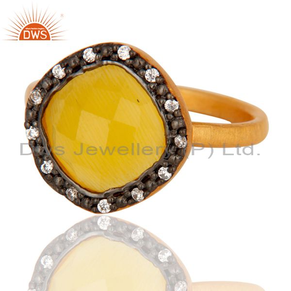 18K Gold Plated Sterling Silver Yellow Moonstone Gemstone & White Zircon Ring