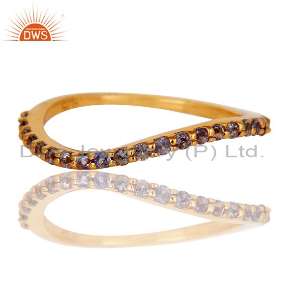18k Gold Plated Tanzenite 925 Sterling Silver Band Ring