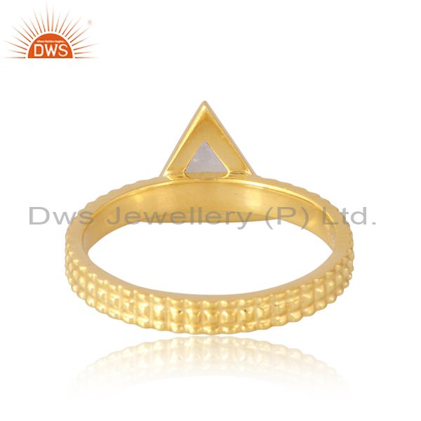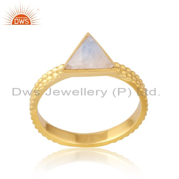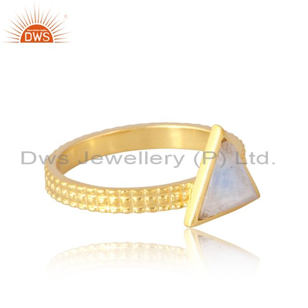 18K Gold Rainbow Moonstone Pyramid Triangle Silver Ring
