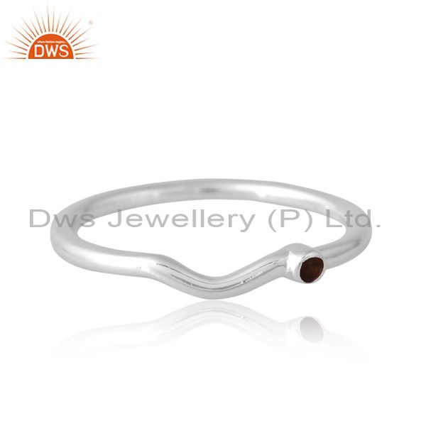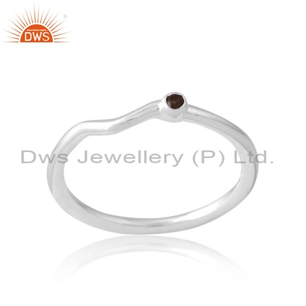 18K Gold Sterling Silver Ring With Smoky Cut Round Gemstone