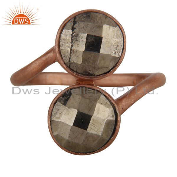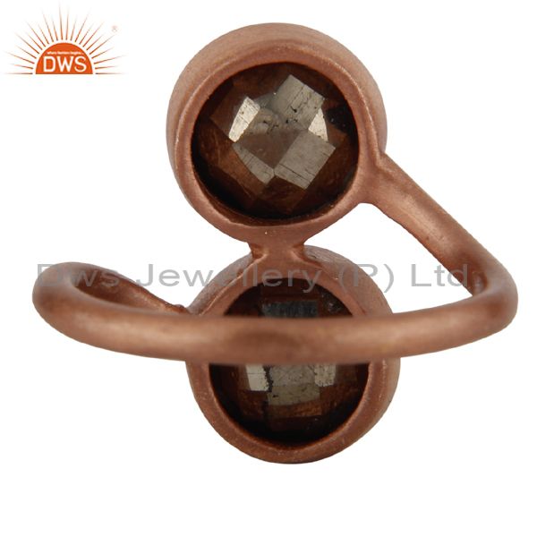 18K Rose Gold Over Sterling Silver Golden Pyrite Gemstone Stacking Ring