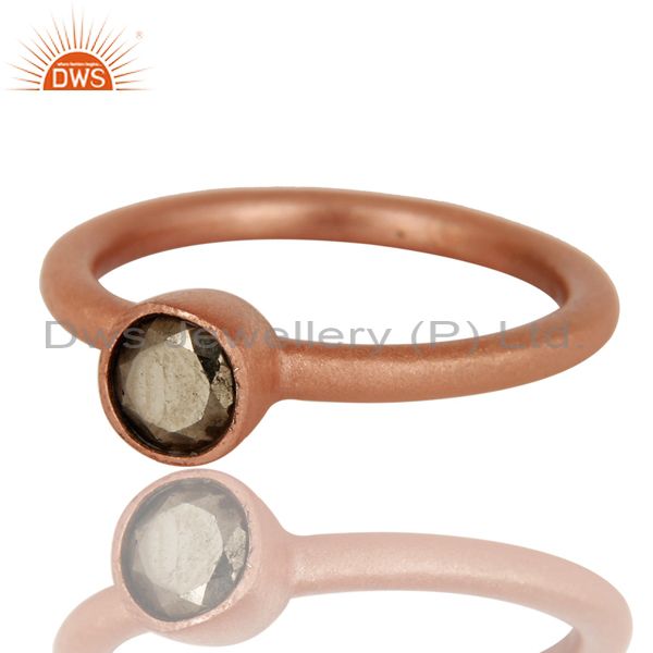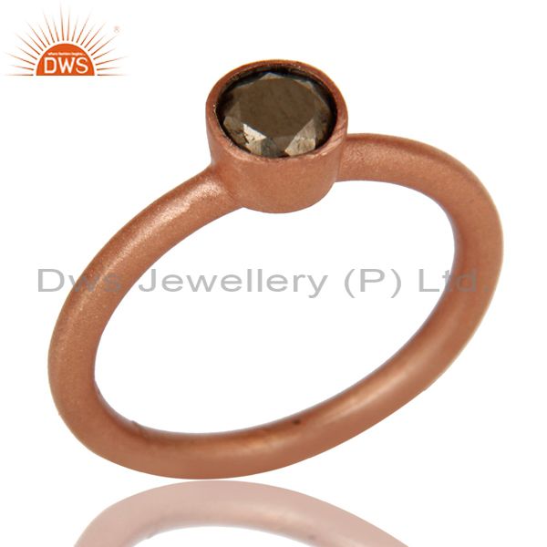 18K Rose Gold Plated 925 Sterling Silver Golden Pyrite Gemstone Stackable Ring