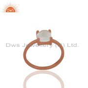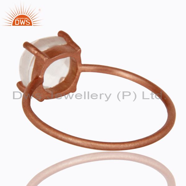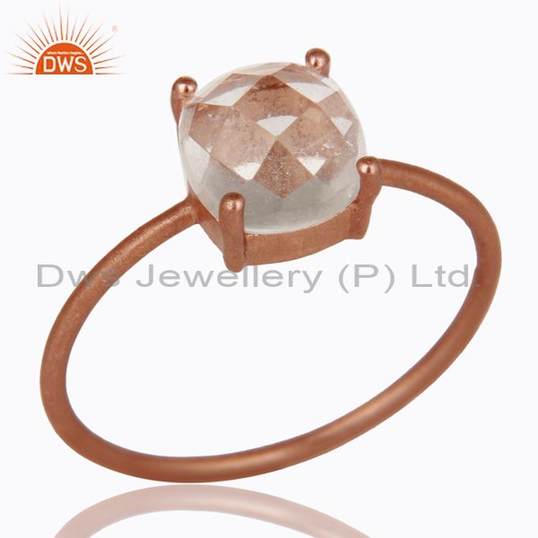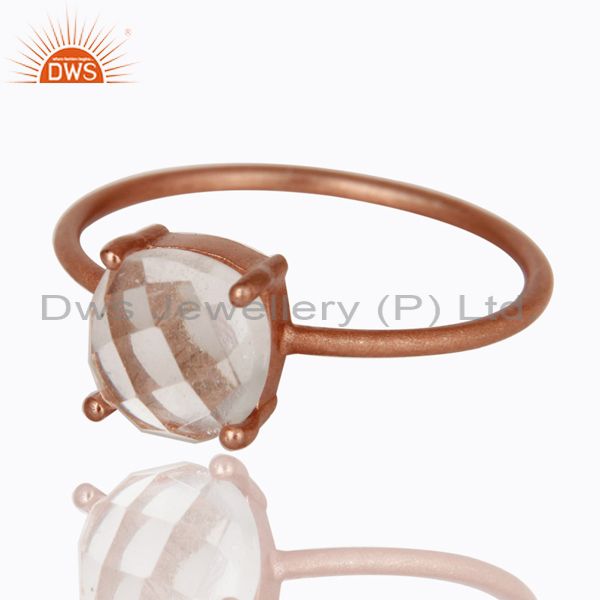 18K Rose Gold Plated Sterling Silver Crystal Quartz Prong Set Stacking Ring