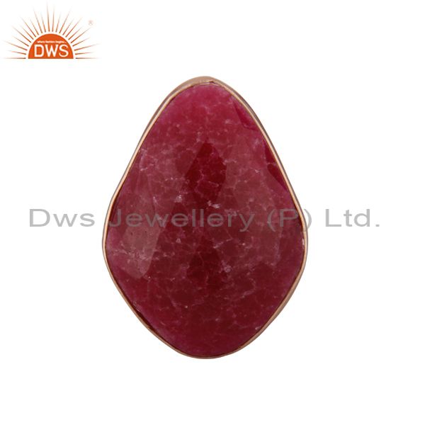 18K Rose Gold Plated Sterling Silver Dyed Ruby Gemstone Bezel Set Ring