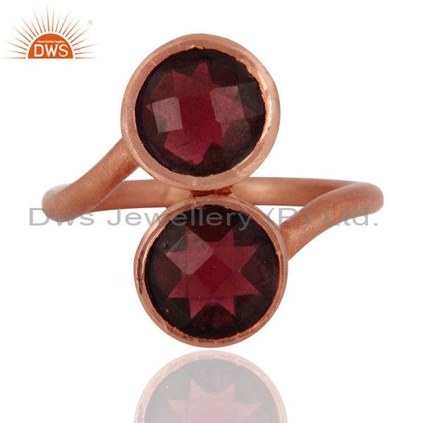 18K Rose Gold Plated Sterling Silver Garnet Gemstone Statement Ring