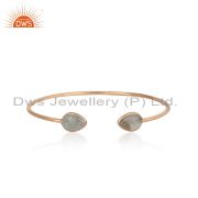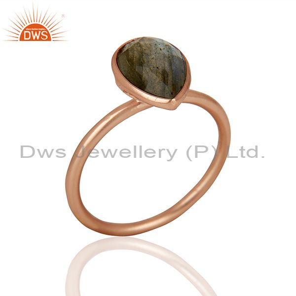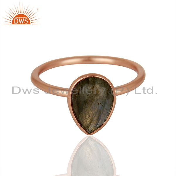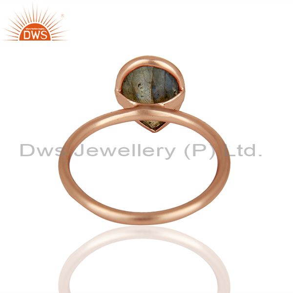 18K Rose Gold Plated Sterling Silver Labradorite Bezel Set Stack Ring