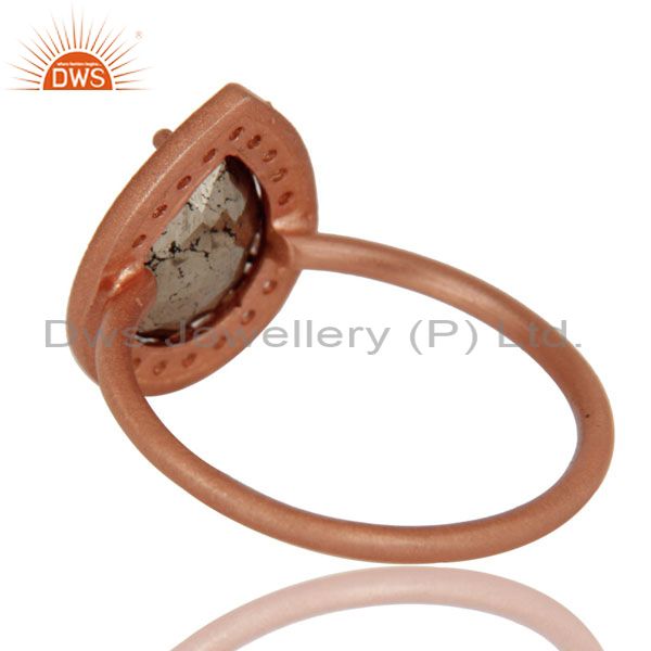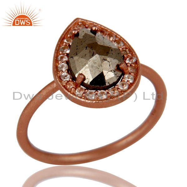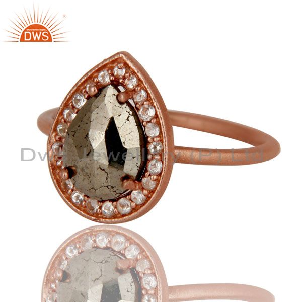 18K Rose Gold Plated Sterling Silver Pyrite And White Topaz Stackable Ring
