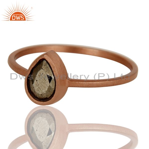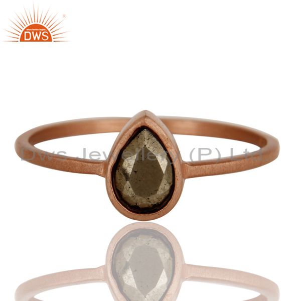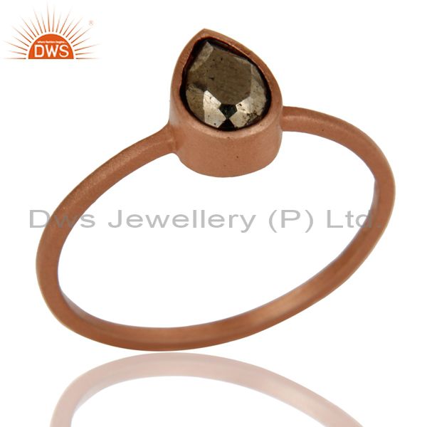 18K Rose Gold Plated Sterling Silver Pyrite Gemstone Stacking Ring