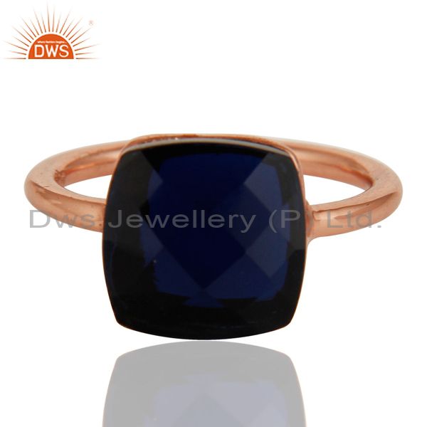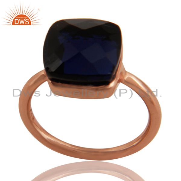 18K Rose Gold Plated Sterling Silver Sapphire Blue Corundum Stackable Ring