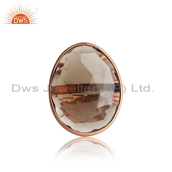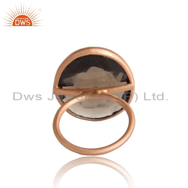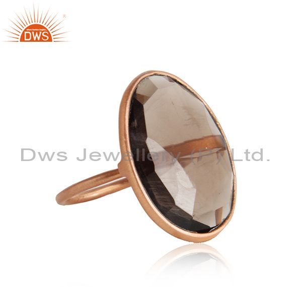 18K Rose Gold Plated Sterling Silver Smoky Quartz Bezel Set Cocktail Ring