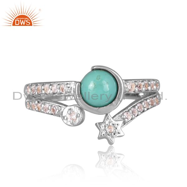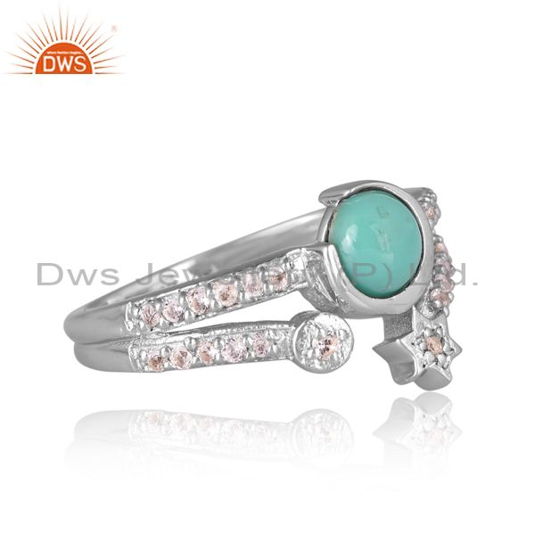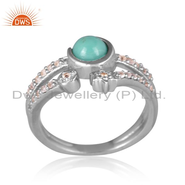 18K Silver Ring With Arizona Turquoise & White Topaz