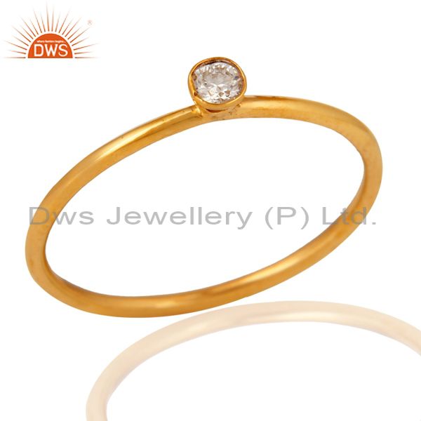 18K Solid Yellow Gold Natural White Diamond Engagement Stacking Ring