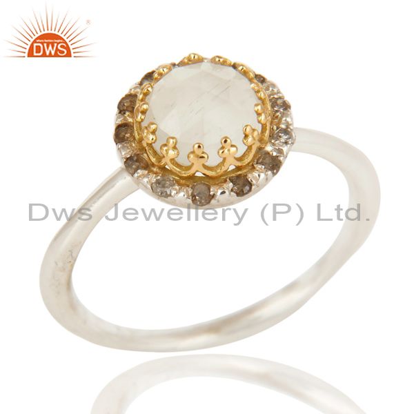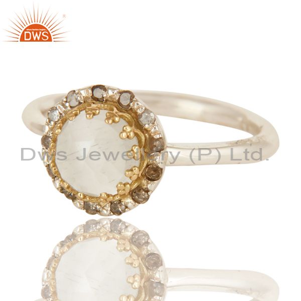 18K Yellow Gold And Sterling Silver Natural Diamond & Moonstone Stack Ring