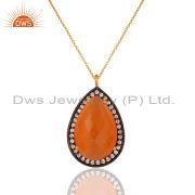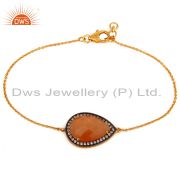 18K Yellow Gold Over 925 Sterling Silver Peach Moonstone Designer Ring With Cz