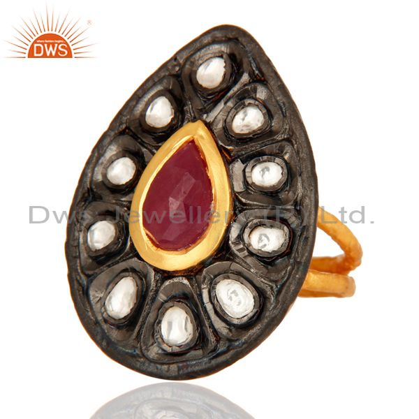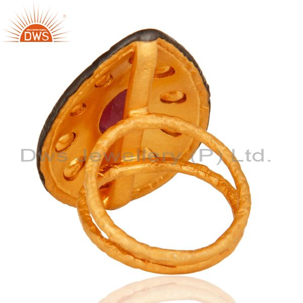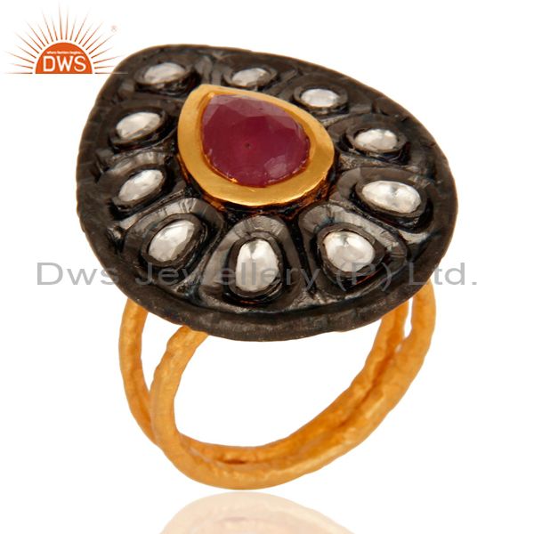 18K Yellow Gold Over Sterling Silver Cz And Genuine Ruby Cocktail Ring