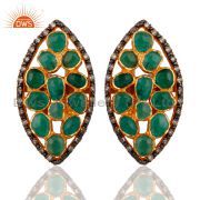 18K Yellow Gold Over Sterling Silver Raw Emerald And Pave Diamond Statement Ring