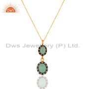 18K Yellow Gold Plated 925 Sterling Silver Blue Aqua Glass & White Zircon Ring