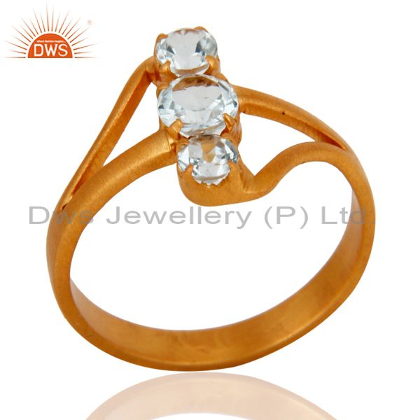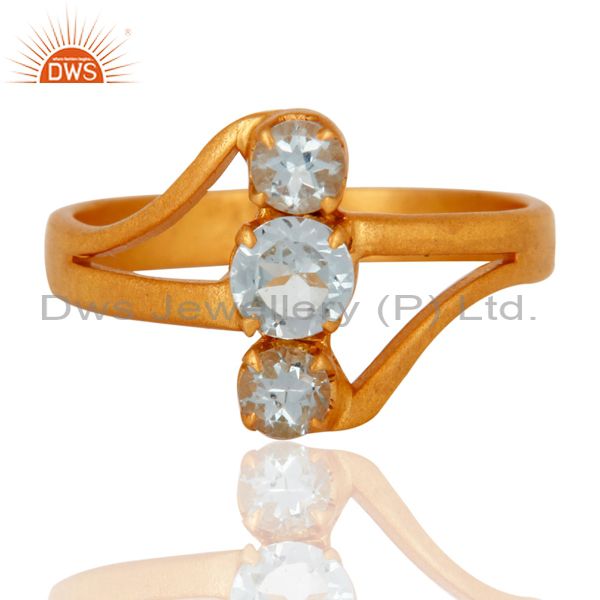 18K Yellow Gold Plated 925 Sterling Silver Handmade Blue Topaz Statement Ring
