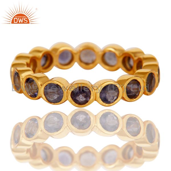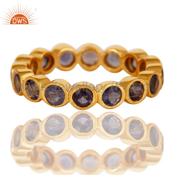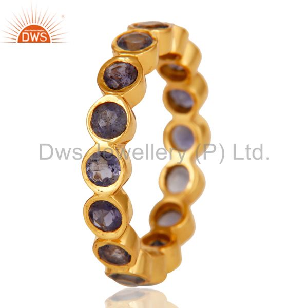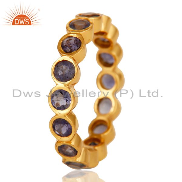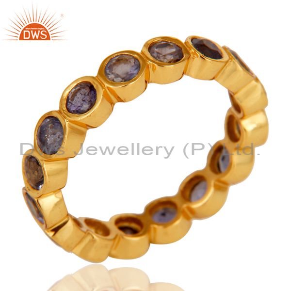 18K Yellow Gold Plated 925 Sterling Silver Iolite Gemstone Band Ring