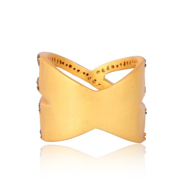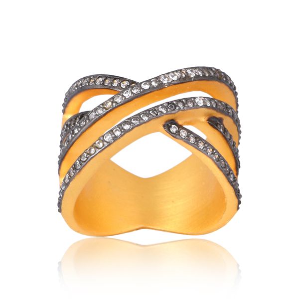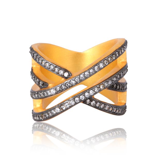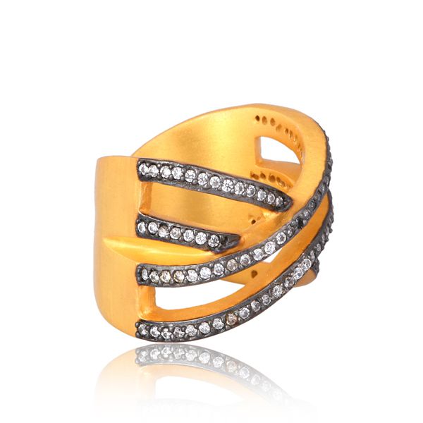 18K Yellow Gold Plated Brass Cubic Zirconia Designer Engagement Dome Ring