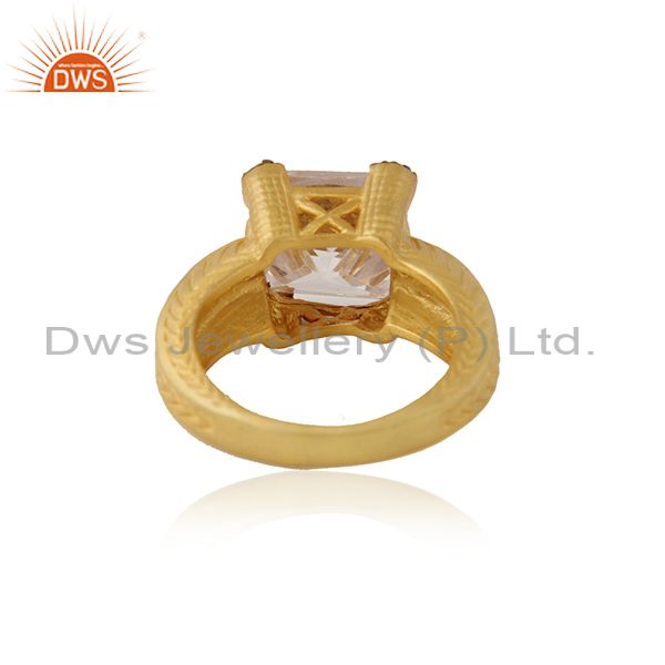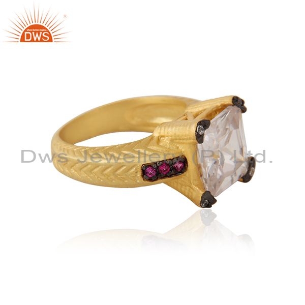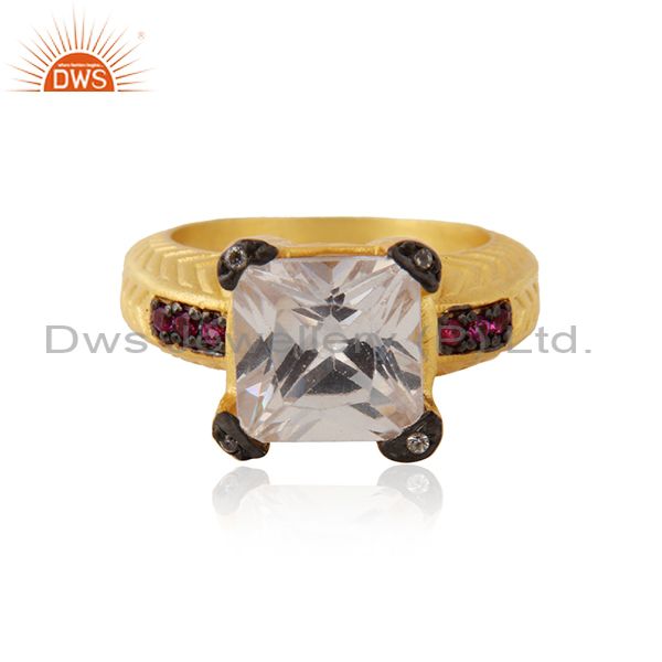 18K Yellow Gold Plated Brass Cubic Zirconia Hammered Cocktail Ring