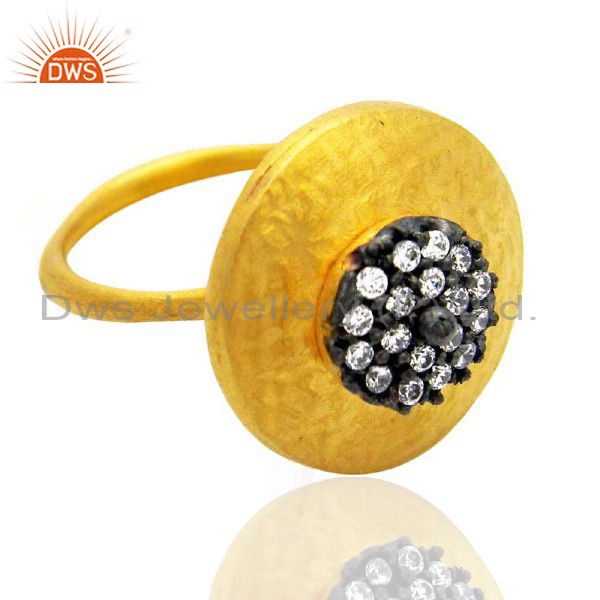 18K Yellow Gold Plated Brass Cubic Zirconia Hammered Stack Cocktail Ring