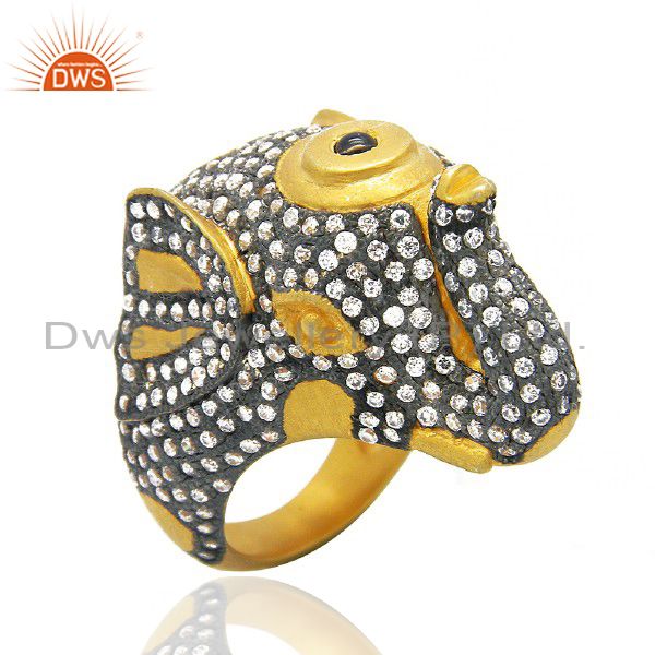 18K Yellow Gold Plated Brass Cubic Zirconia Vintage Look Elephant Cocktail Ring