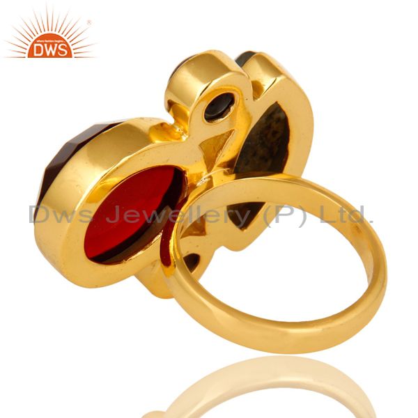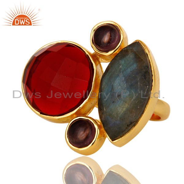 18K Yellow Gold Plated Brass Hydro Amethyst And Labradorite Statement Ring