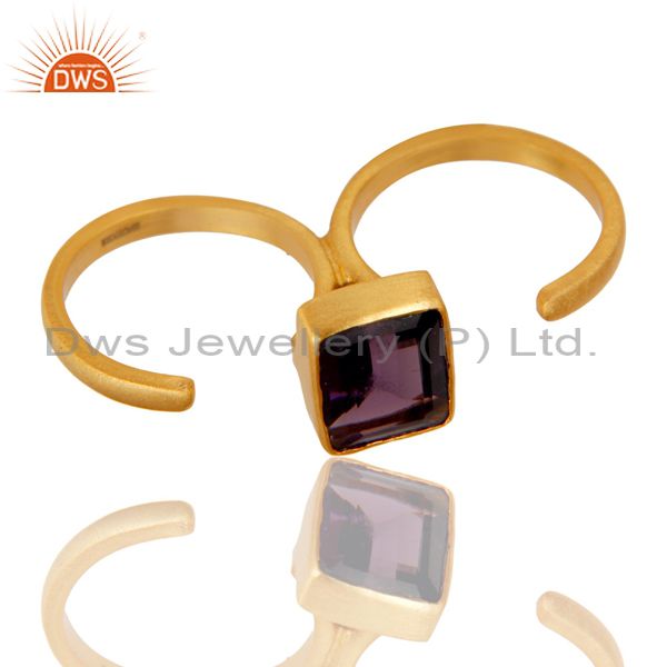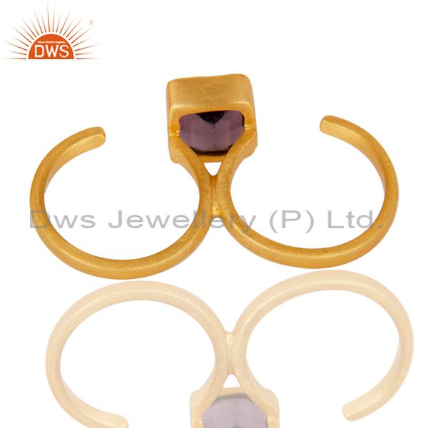 18K Yellow Gold Plated Brass Hydro Amethyst Double Finger Open Ring