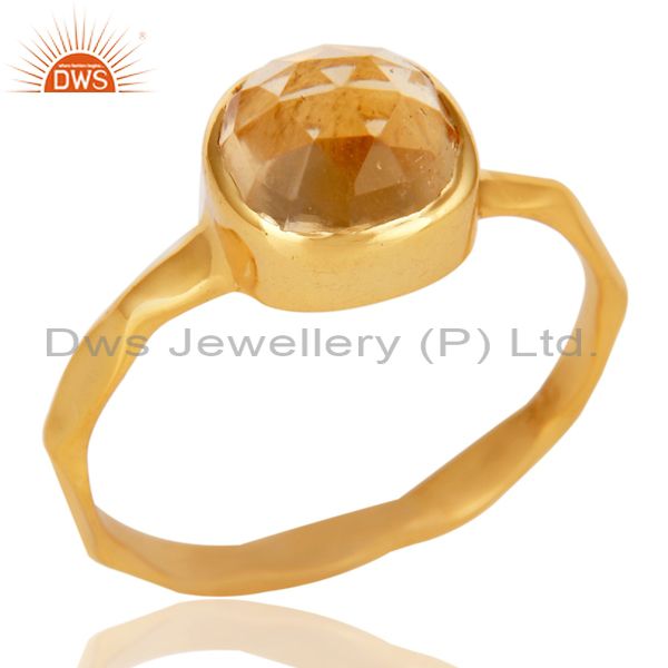 18K Yellow Gold Plated Citrine Gemstone Sterling Silver Stackable Ring