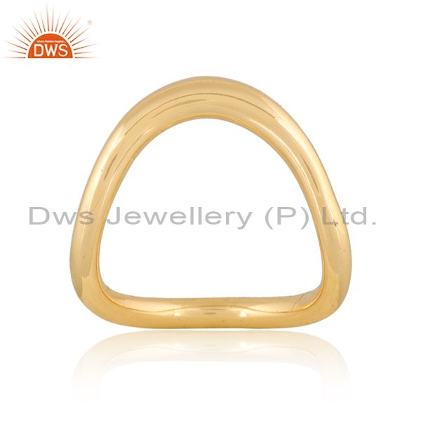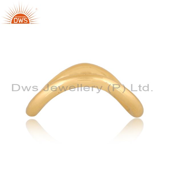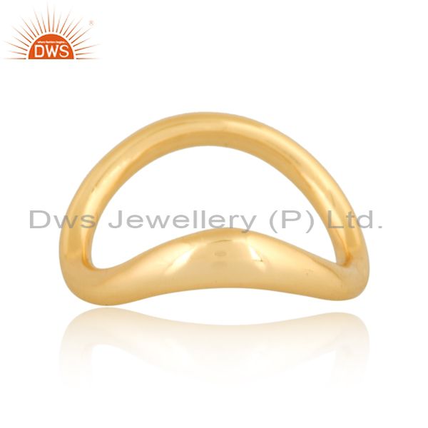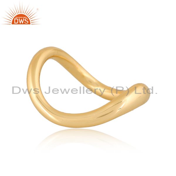 18K Yellow Gold Plated Handmade Wave Design Brass Band Ring