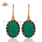 18K Yellow Gold Plated Natural Green Onyx Gemstone Sterling Silver Ring With Cz