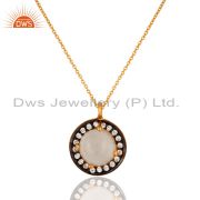 18K Yellow Gold Plated On Sterling Silver White Moonstone Stacking Ring With Cz