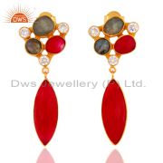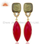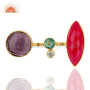 18K Yellow Gold Plated Peach Moonstone Faceted Gemstone Ring