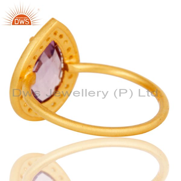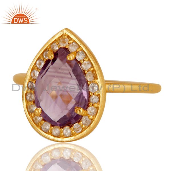 18k Yellow Gold Plated Sterling Silver Amethyst & White Topaz Stacking Ring