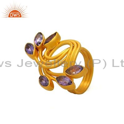 18K Yellow Gold Plated Sterling Silver Amethyst Gemstone Designer Ring