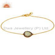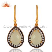 18K Yellow Gold Plated Sterling Silver Aqua Chalcedony And Cz Stacking Ring
