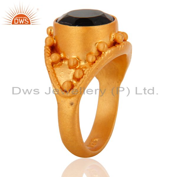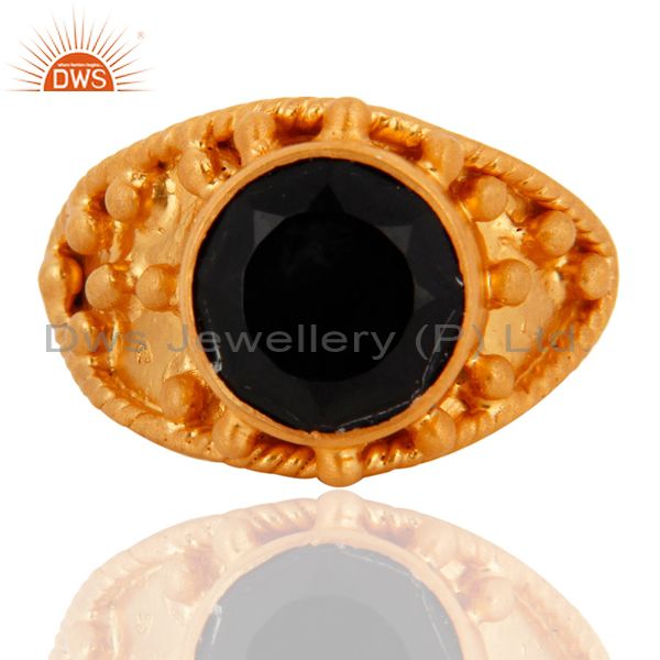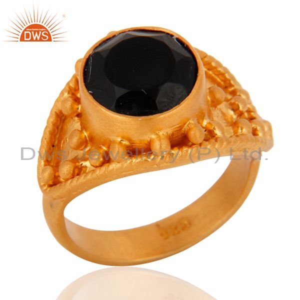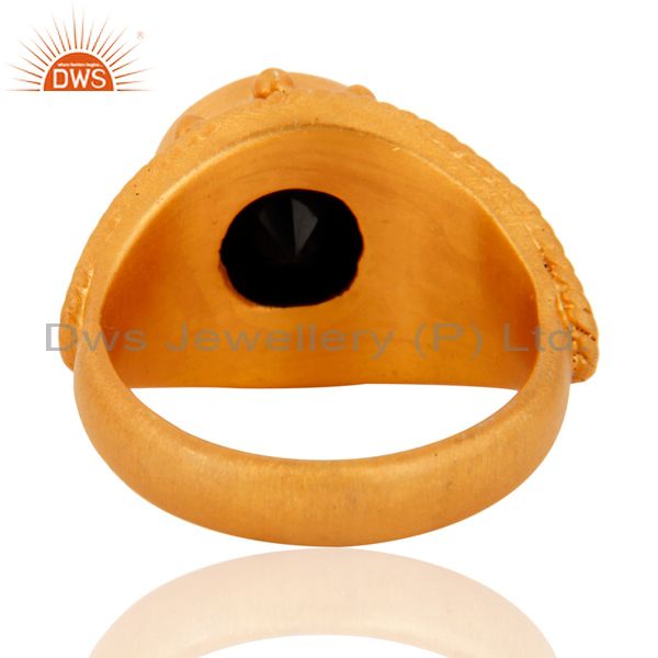 18K Yellow Gold Plated Sterling Silver Black Onyx Gemstone Designer Ring