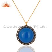 18K Yellow Gold Plated Sterling Silver Blue Chalcedony Cocktail Ring With Cz