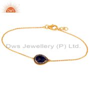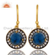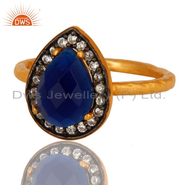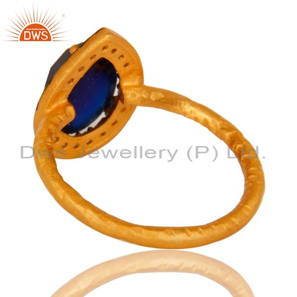 18K Yellow Gold Plated Sterling Silver Blue Corundum And Cz Hammered Band Ring