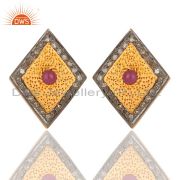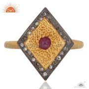 18K Yellow Gold Plated Sterling Silver Blue Sapphire And Pave Diamond Stack Ring