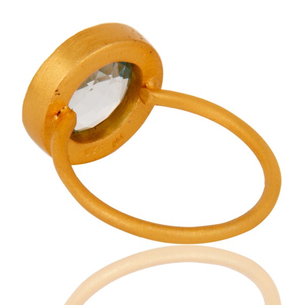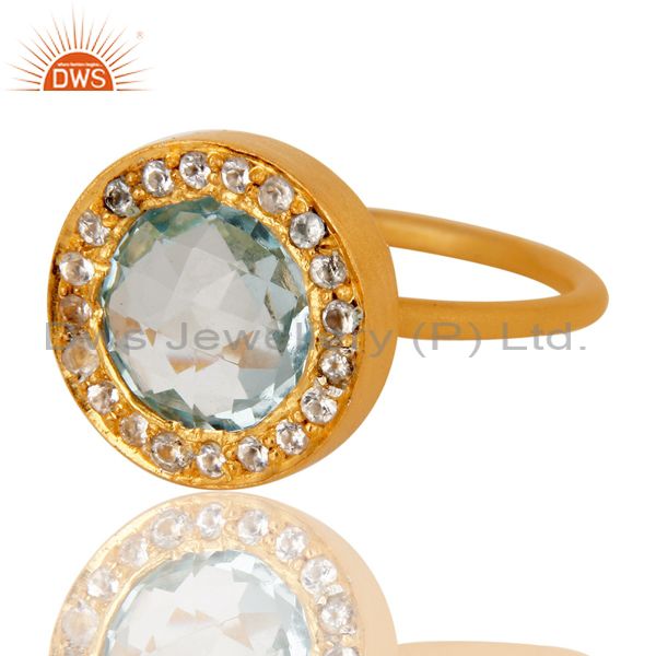 18K Yellow Gold Plated Sterling Silver Blue Topaz and White Topaz Cocktail Ring