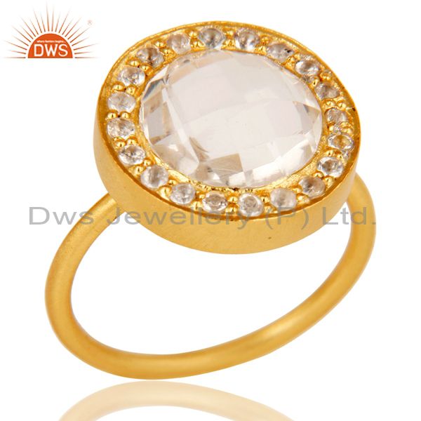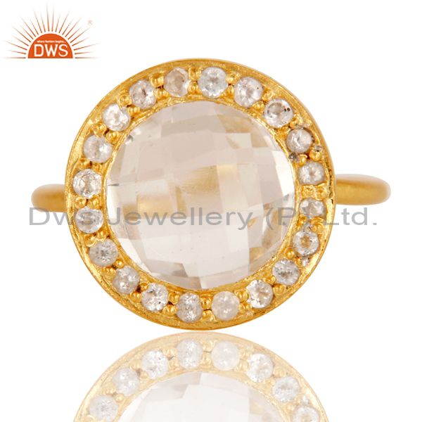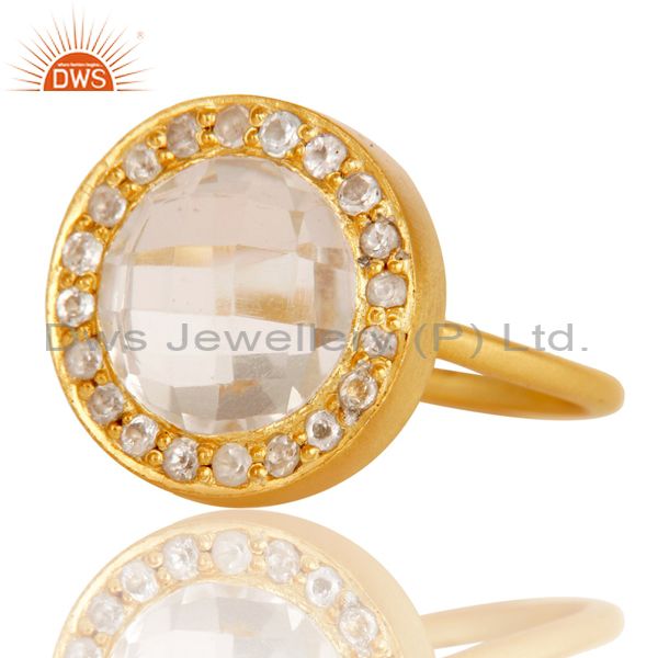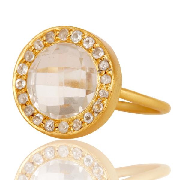 18K Yellow Gold Plated Sterling Silver Crystal & White Topaz Cocktail Ring