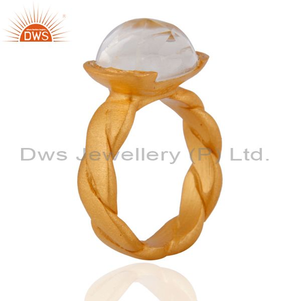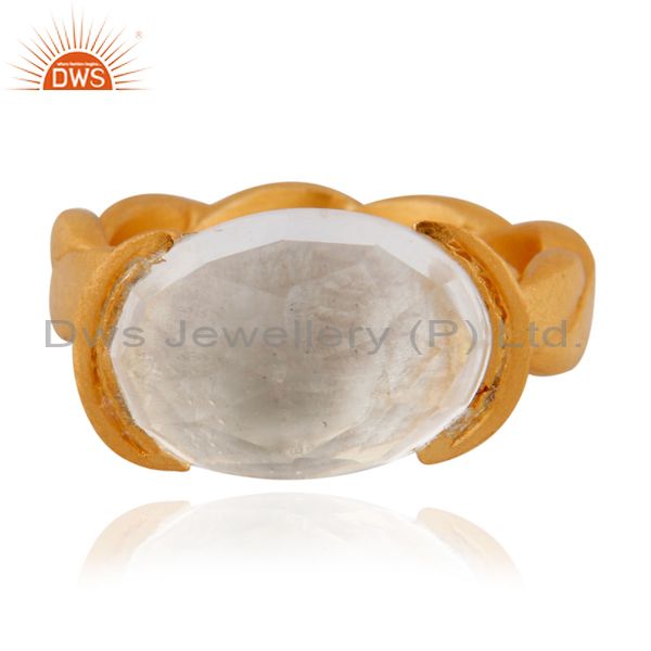 18K Yellow Gold Plated Sterling Silver Crystal Quartz Oval Ring