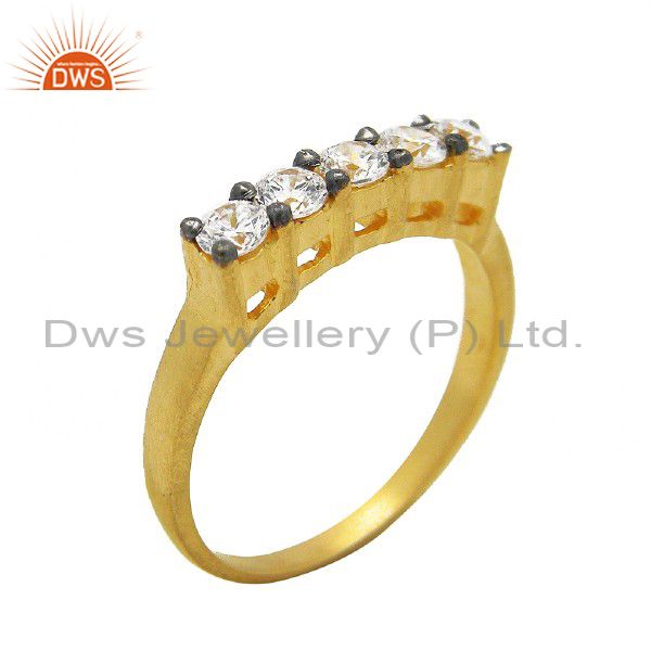 18K Yellow Gold Plated Sterling Silver Cubic Zirconia Bridal Fashion Ring