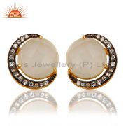18K Yellow Gold Plated Sterling Silver Cz & White Moonstone Stack Designer Ring