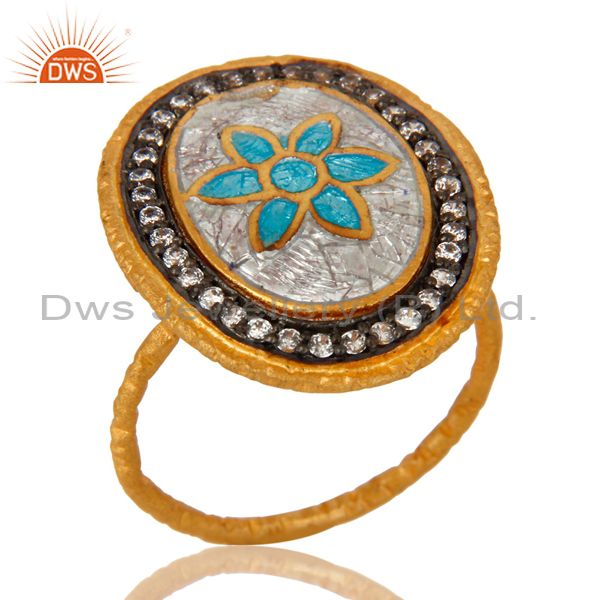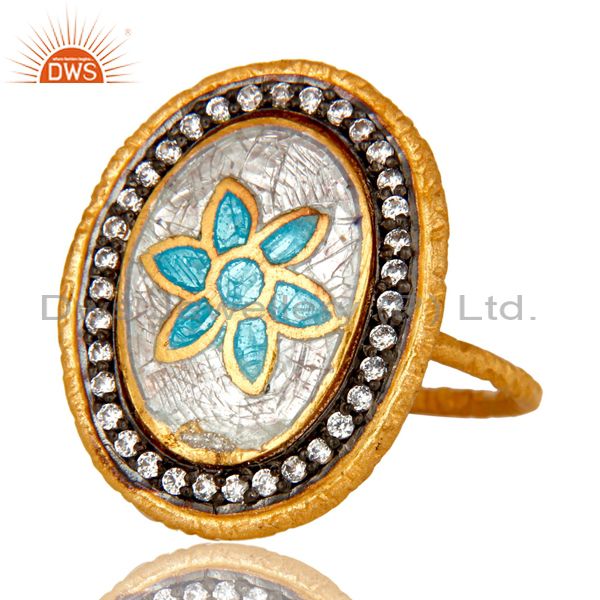 18K Yellow Gold Plated Sterling Silver Enamel Paint Fashion Cocktail Stack Ring