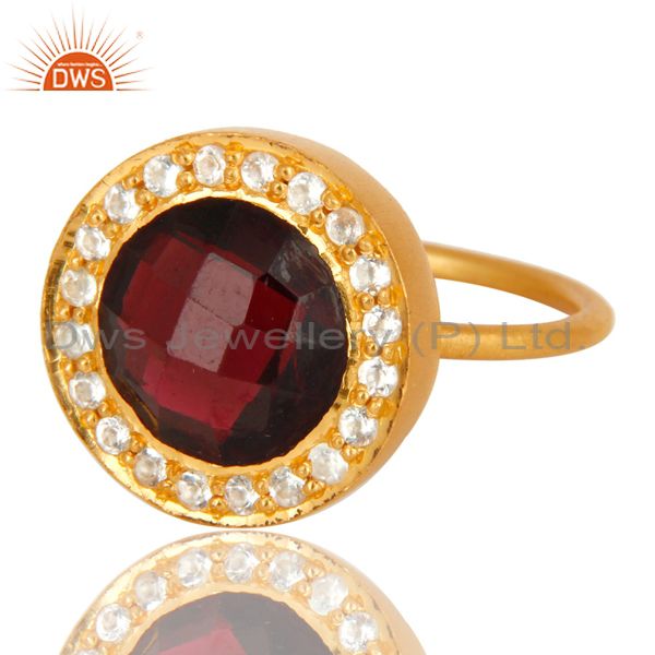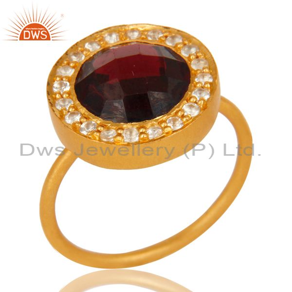 18K Yellow Gold Plated Sterling Silver Garnet And White Topaz Stackable Ring