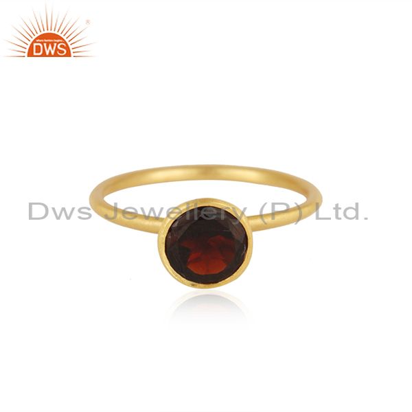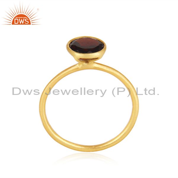 18K Yellow Gold Plated Sterling Silver Garnet Gemstone Stackable Ring