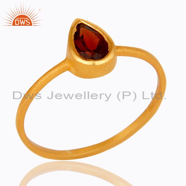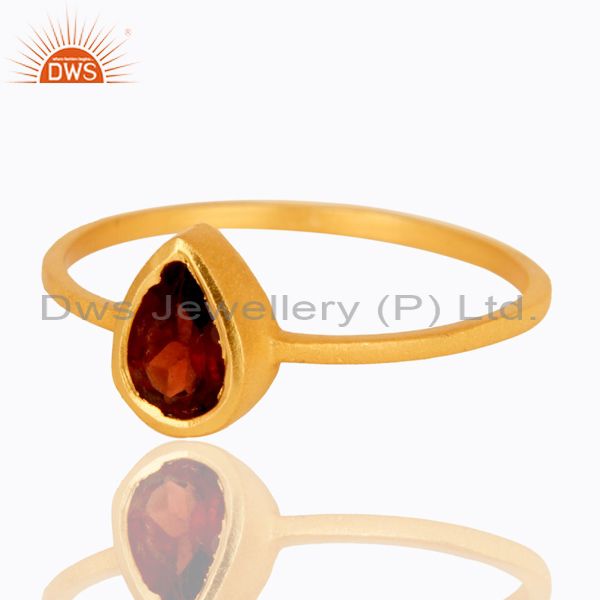 18K Yellow Gold Plated Sterling Silver Garnet Gemstone Stacking Ring